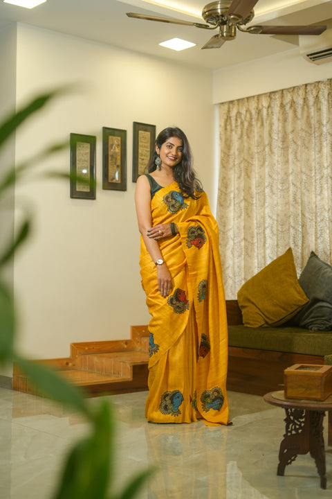 Sold outYellow Geecha Kalamkari Saree