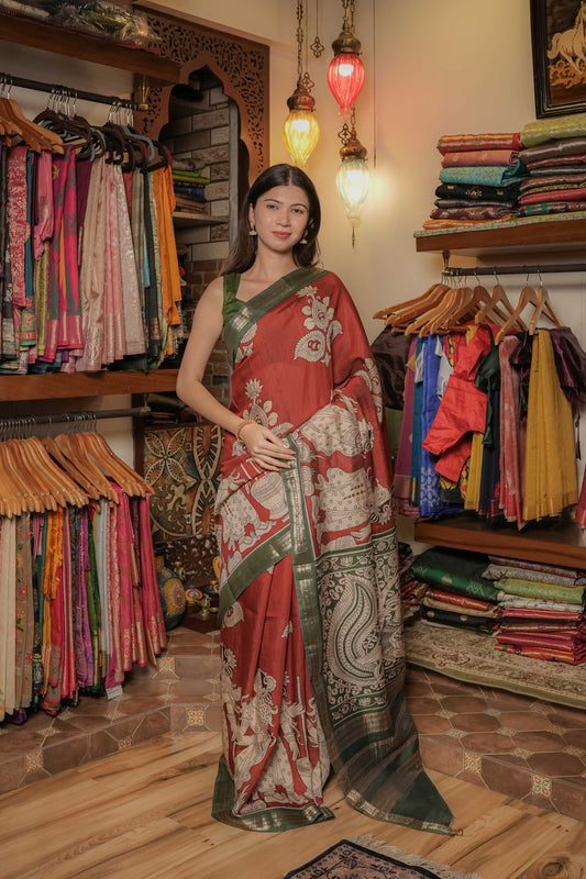 Brown Soft Silk Kalamkari Saree