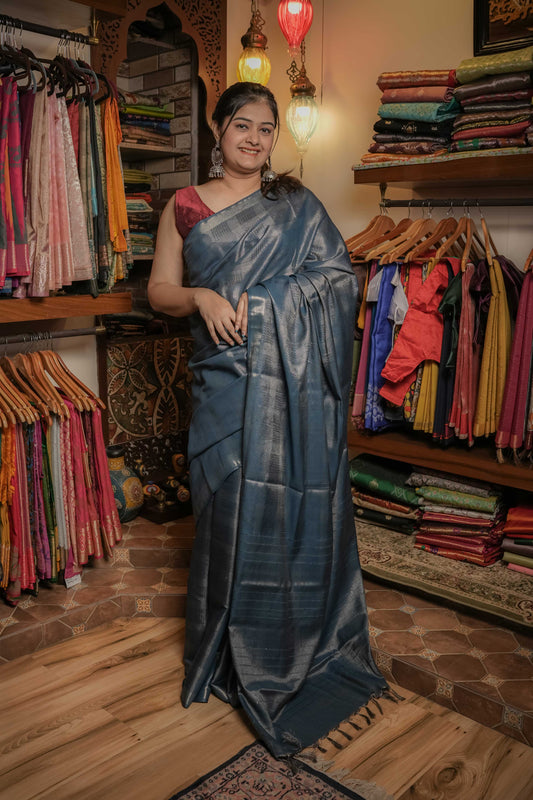 Sold outBlue Tissue Silk Saree