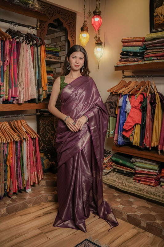 Purple Handcrafted Silk Saree