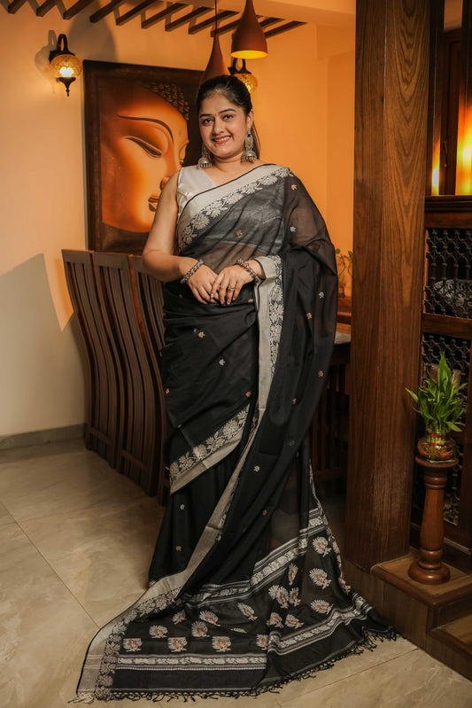 Black Soft Cotton Saree