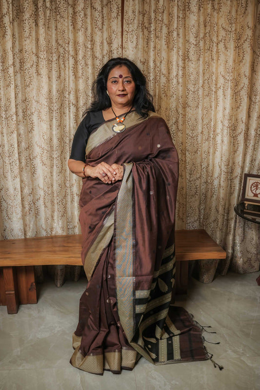 Brown Handloom Cotton Silk Saree