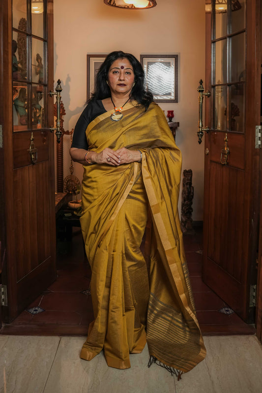 Yellow Cotton Silk Saree
