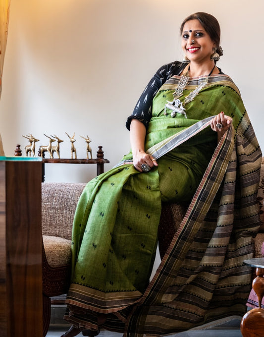 Green And Black Maheshwari Saree
