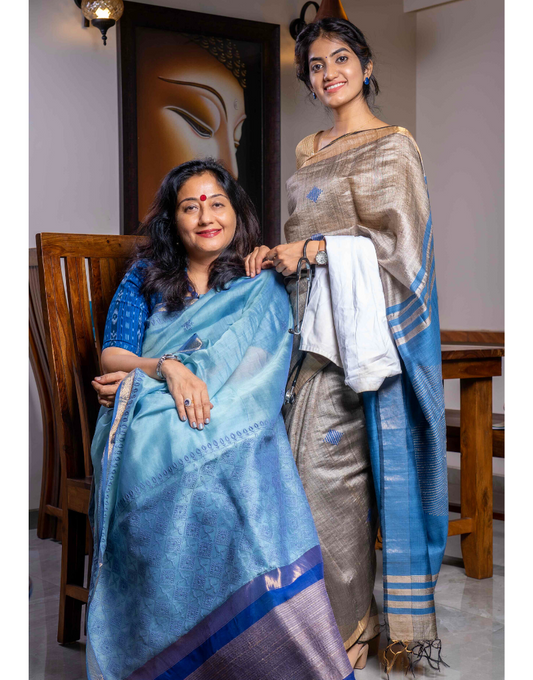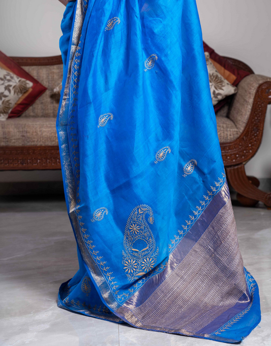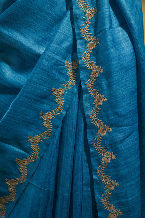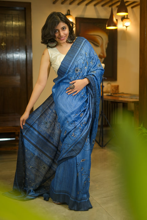 Blue Tussar Saree