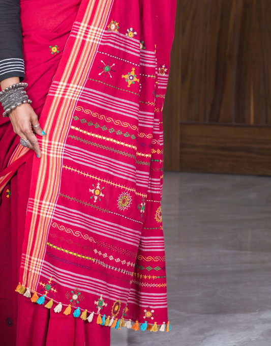 Red Lambani Tribal Soft Cotton Saree