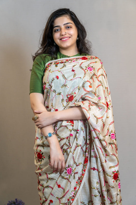 Sold outTussar Saree with Parsi work