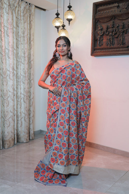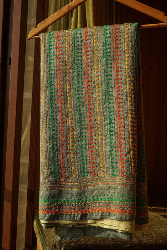 Sold outGrey Tussar Saree With Kantha Work