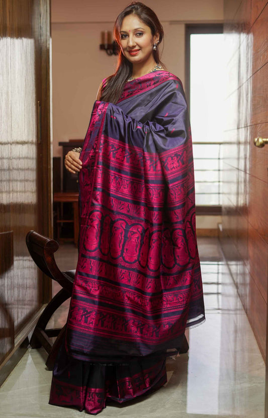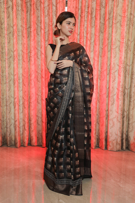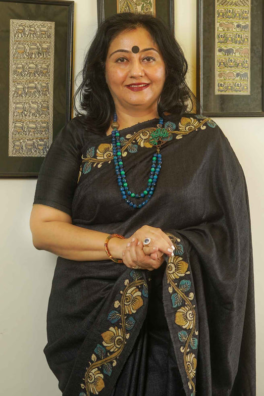 Black Tussar Handwoven Saree