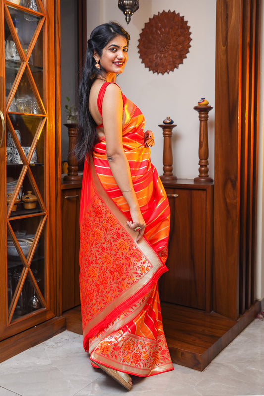 Red and Yellow Katan Silk Saree