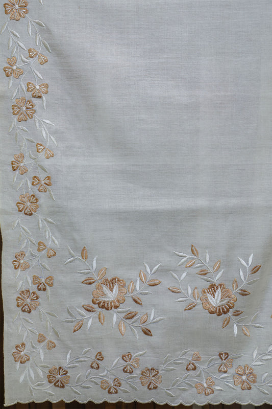 Cream Supernet With Floral Embroidery