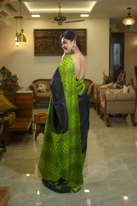 Black and Green Vishnu Puri Silk Saree