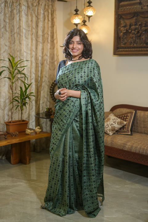 Sold outGreen Tussar Silk Saree