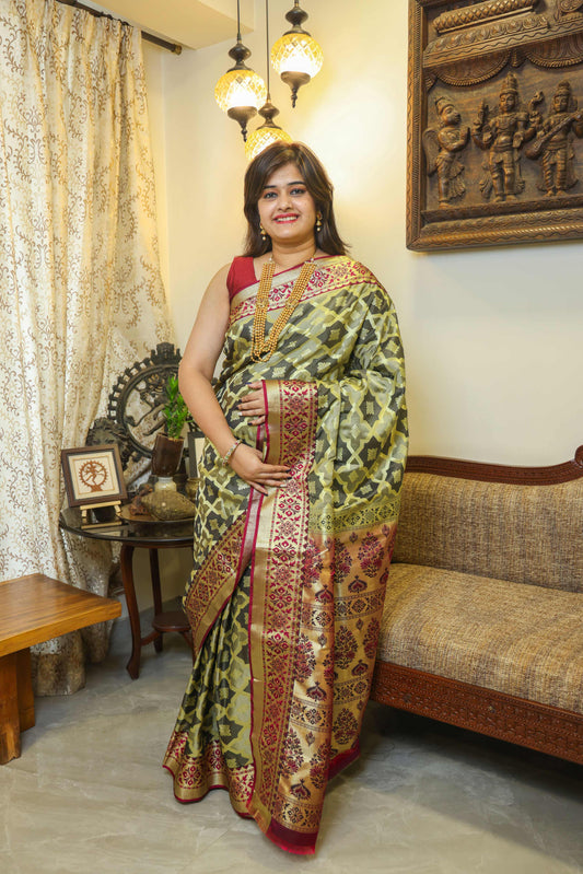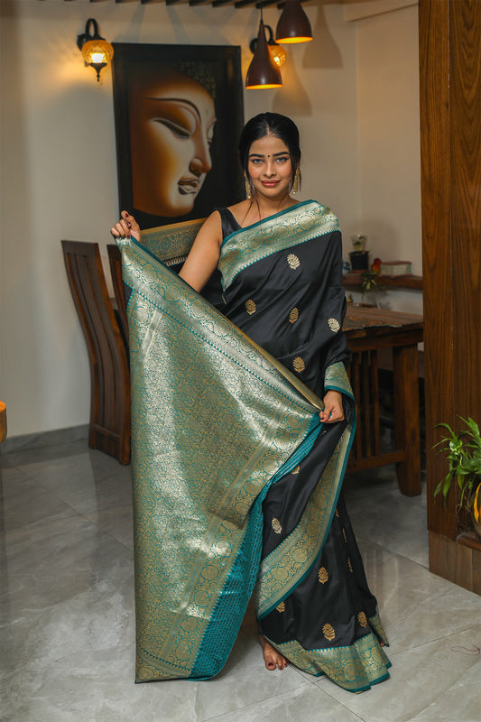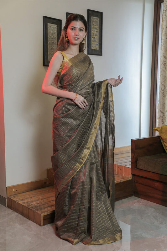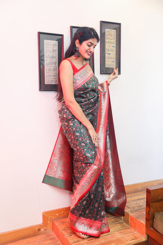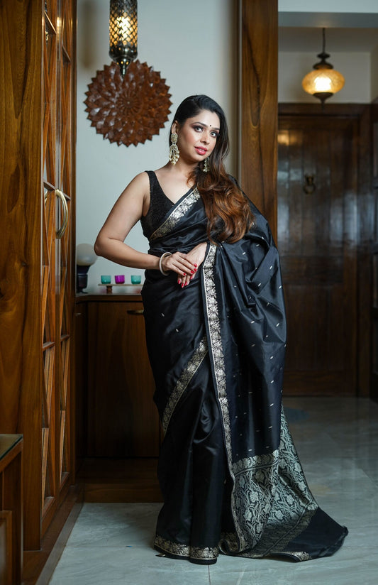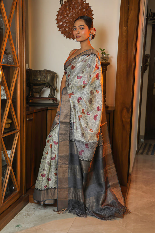 Black Gachi Tussar Saree with Ari and Parsi Embroidery