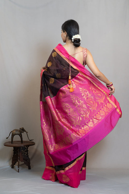 Chocolate brown banarasi silk saree
