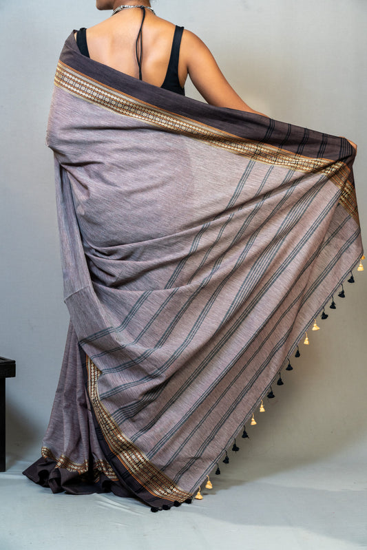 Brown Handwoven Cotton Saree