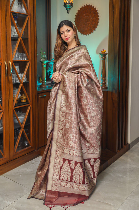 Brown Tissue Silk Saree