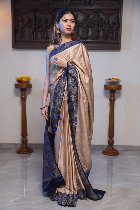 Creamy Brown and Blue Katan Satin Silk Saree