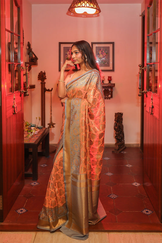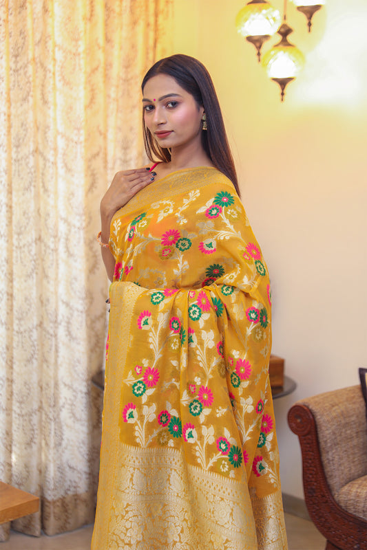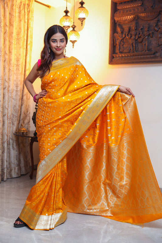 Mustard Yellow Jamawar Banarasi Satin Silk Saree