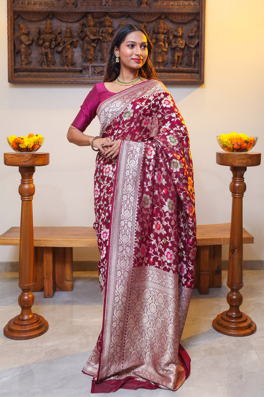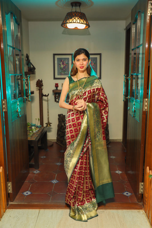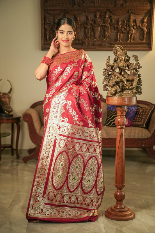 Deep Maroon Katan Banarasi Satin Silk Saree