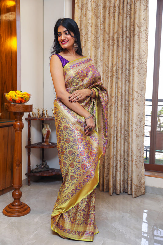 Purple Banarasi Katan Silk Saree with Jangla Pattern