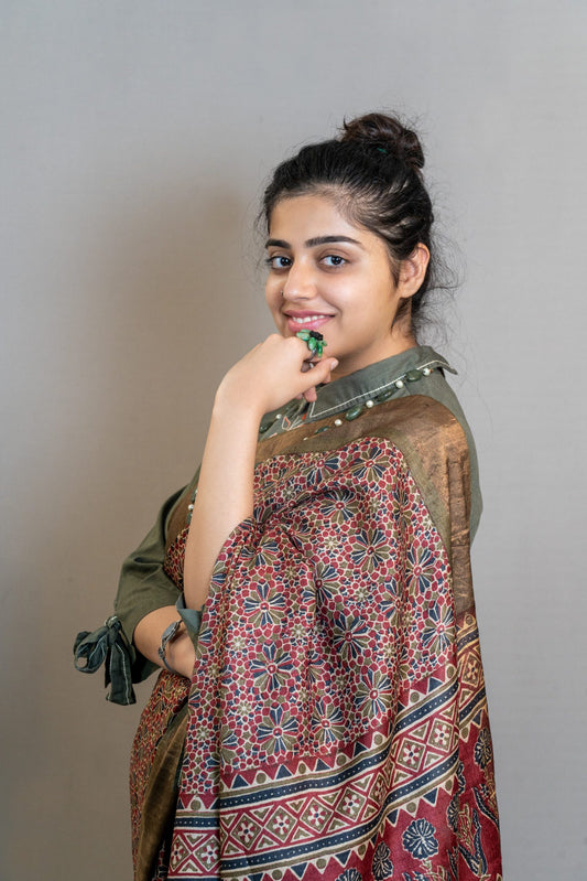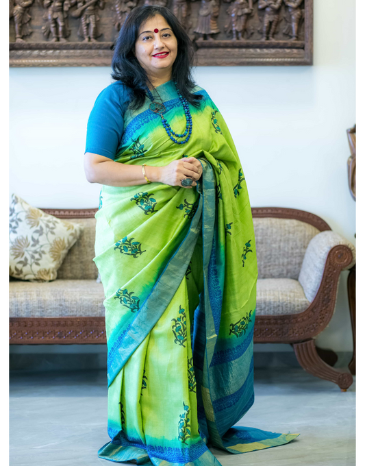 HANDWOVEN TUSSAR WITH AZARAK HANDBLOCK PRINTING