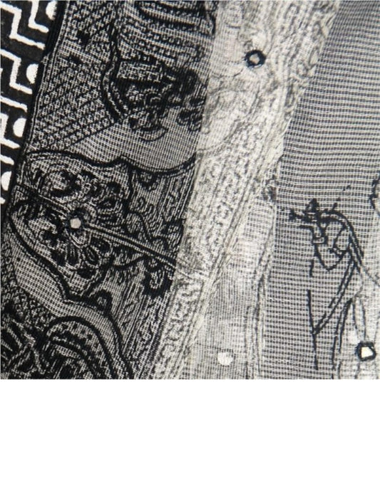 White Supernet Block Print Mirror Work Dupatta