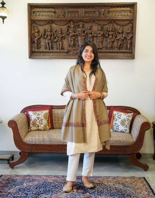 Premium Handwoven stole - Camel and orange color