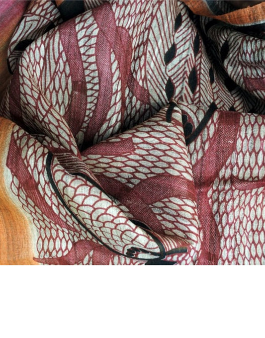 Red Fine Wool Silk Style Statement Stole