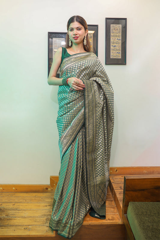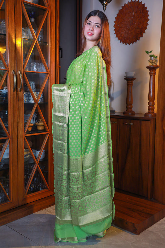 Pista Green Butti Georgette Saree