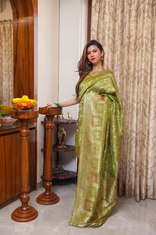 Sold outPista Green Katan Silk Saree