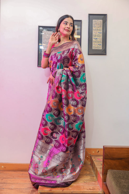Purple Bandini Silk Banarasi Saree