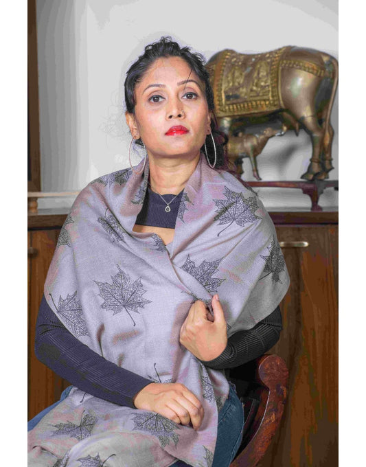 Camel Colour Stole With Maple Leaves All Over