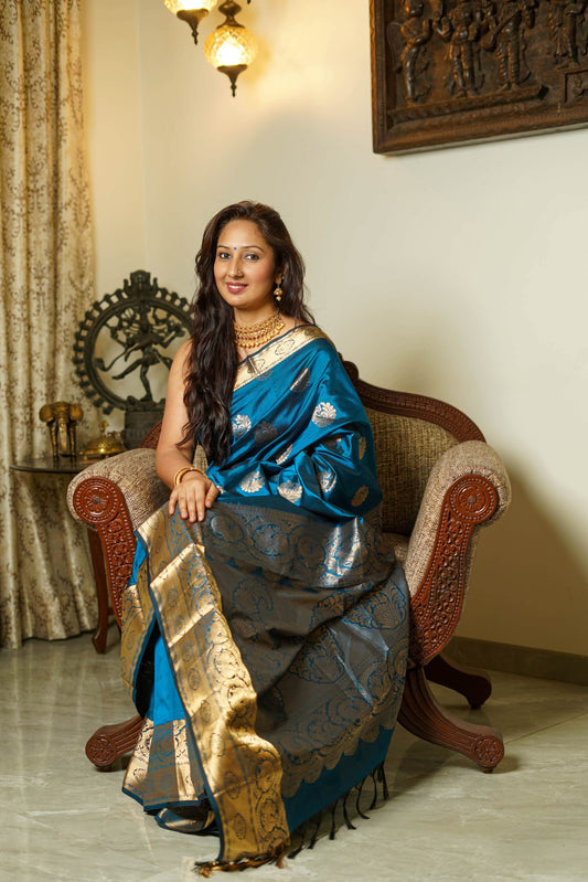 Cobalt Blue Gadwal Silk Saree