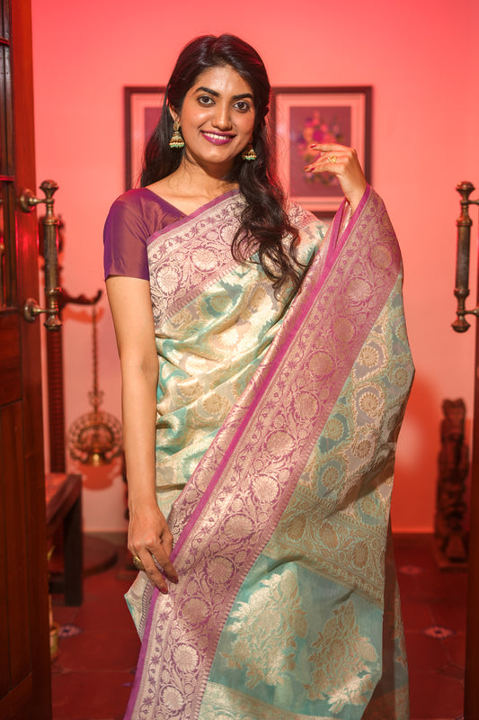 Cyan organza tissue saree