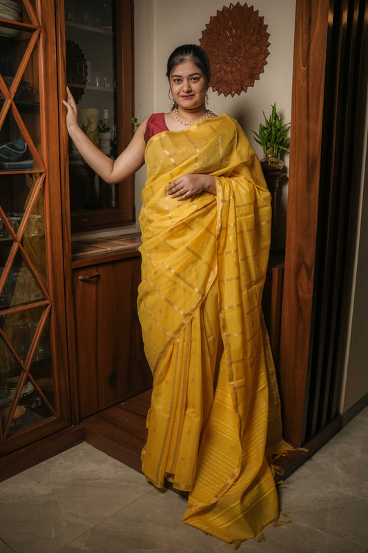 Yellow Cotton Silk Saree