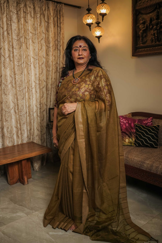 Brown Tissue Silk Saree