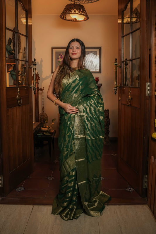 Green Resham Geecha Silk Saree