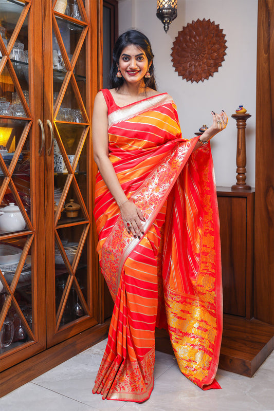Red and Yellow Katan Silk Saree