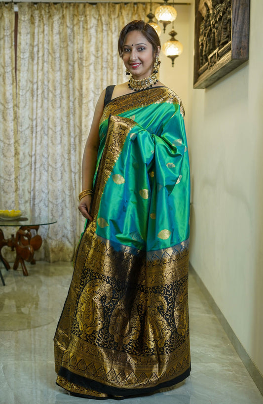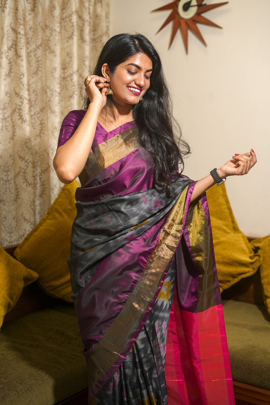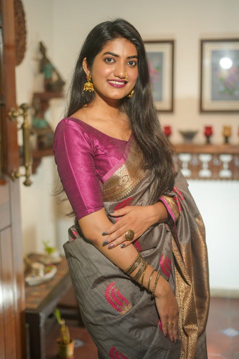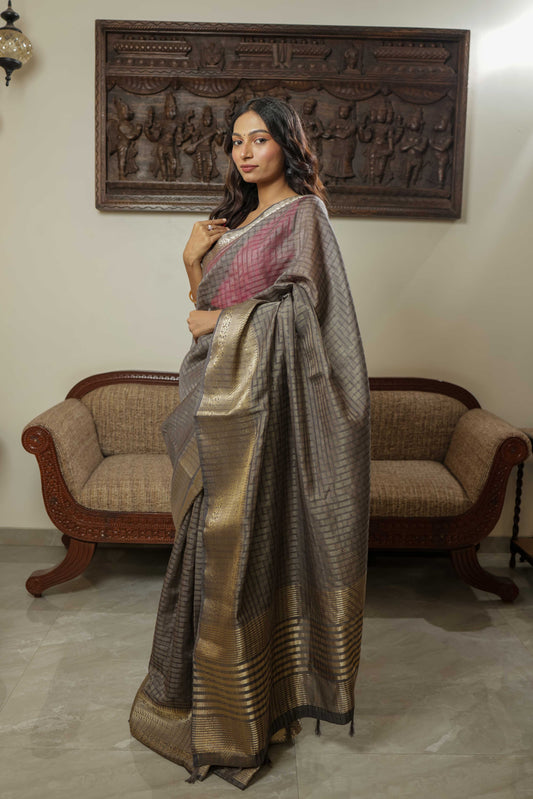 Sold outBaby Pink & Grey Kosa Silk Saree