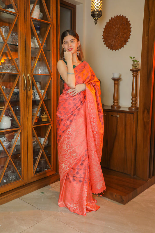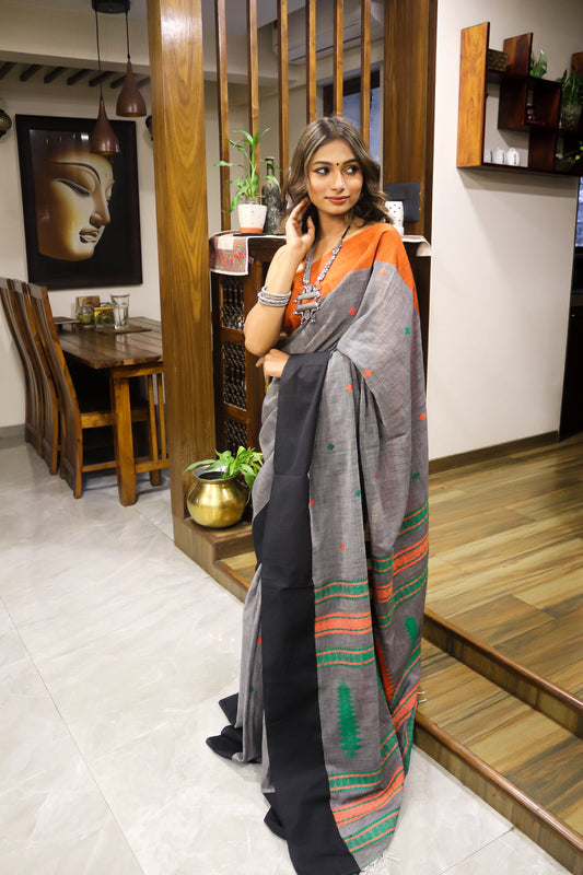 Grey and Orange Soft Cotton Saree with Ganga Jamuna Border