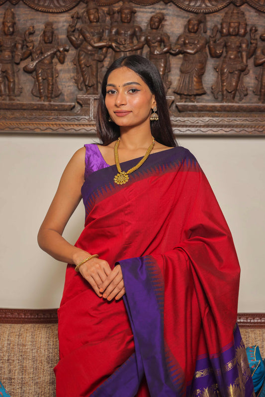 Deep Red Gadwal Cotton Silk Saree