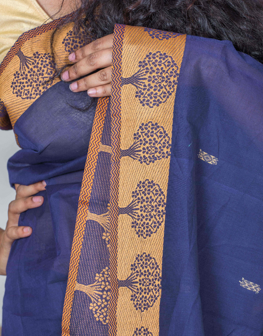 Sold outTeal Blue & Beige Tussar Silk Saree