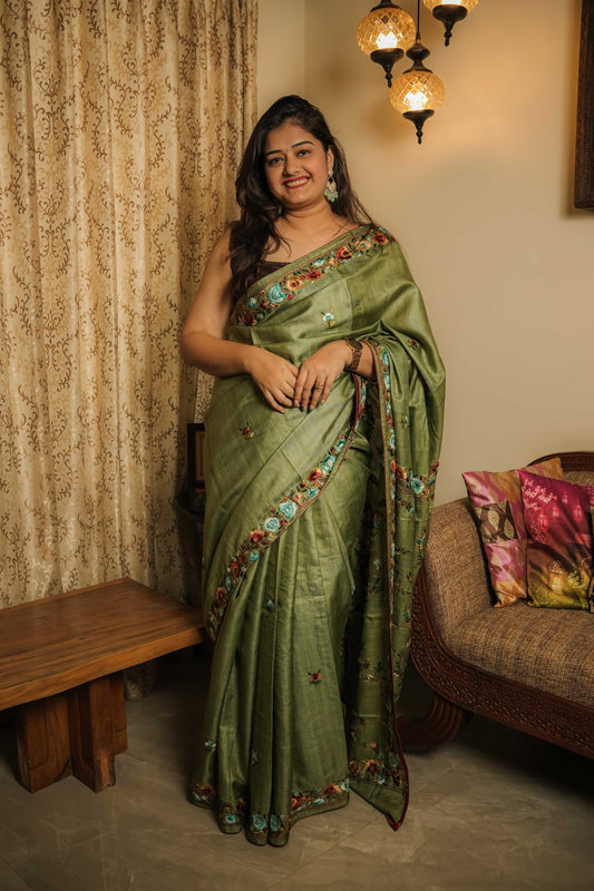 Green Gassi Tussar Saree