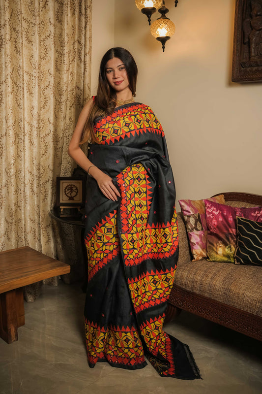 Black Muga Silk Saree