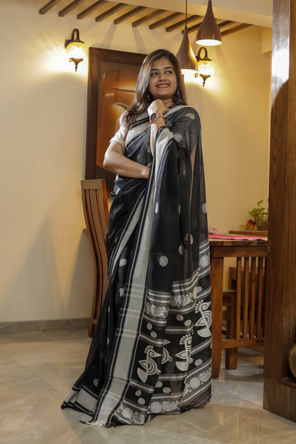 Black Cotton Saree