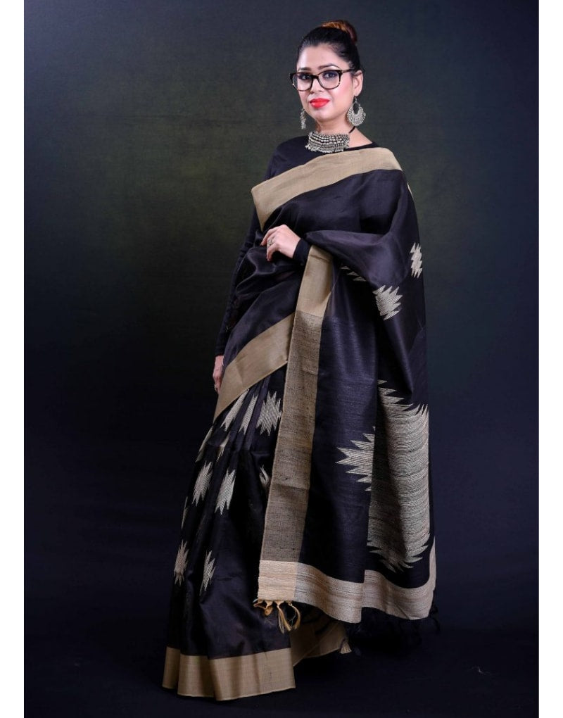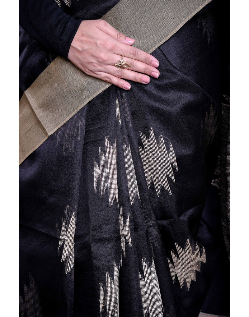 Handwoven Black Organza Fabric Saree with Geecha Border and Zamdani Work