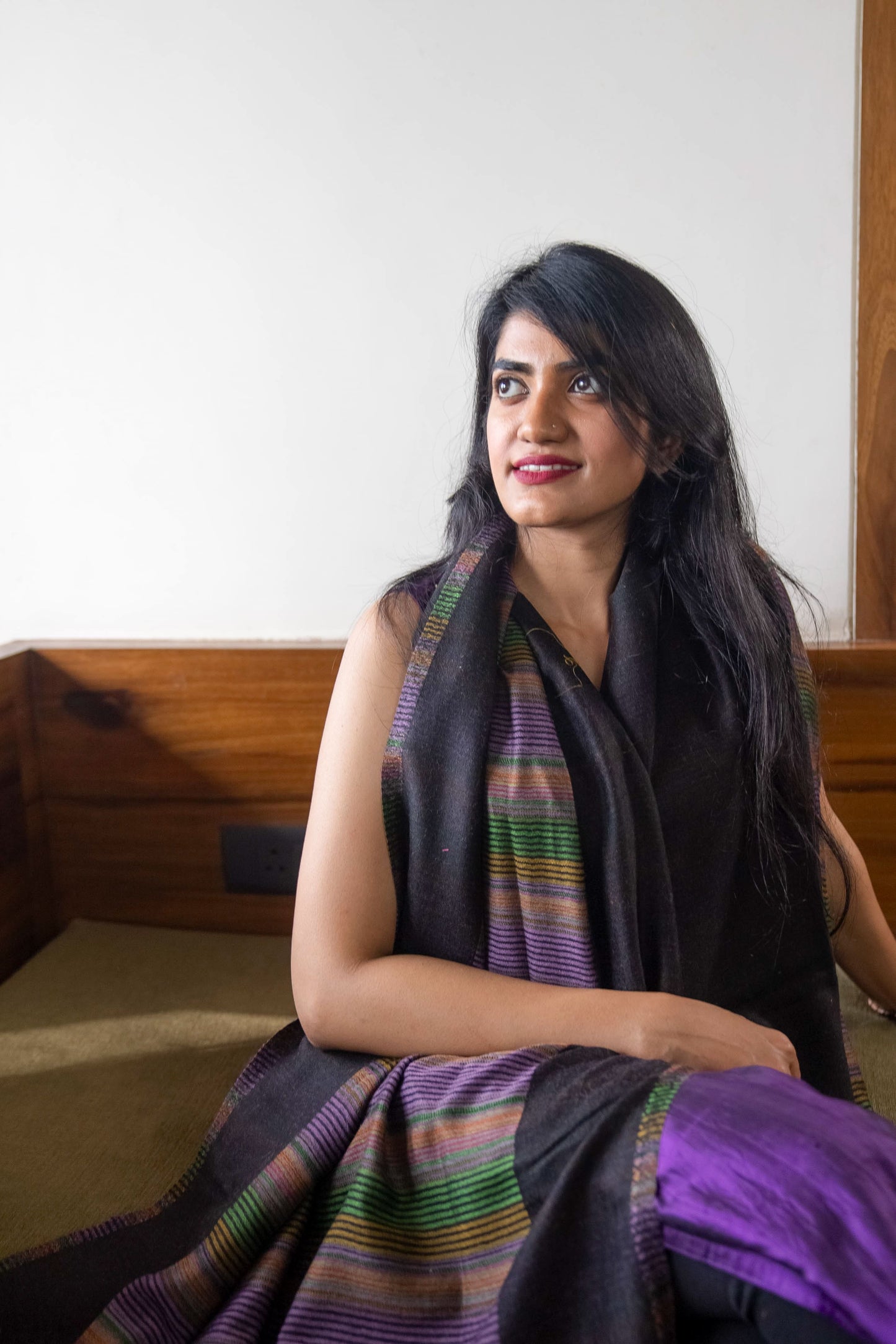 A timeless classic, this black striped reversible stole is versatile and can be styled in a variety of ways. The soft wool fabric ensures comfort and warmth, making it an essential winter accessory for any wardrobe.