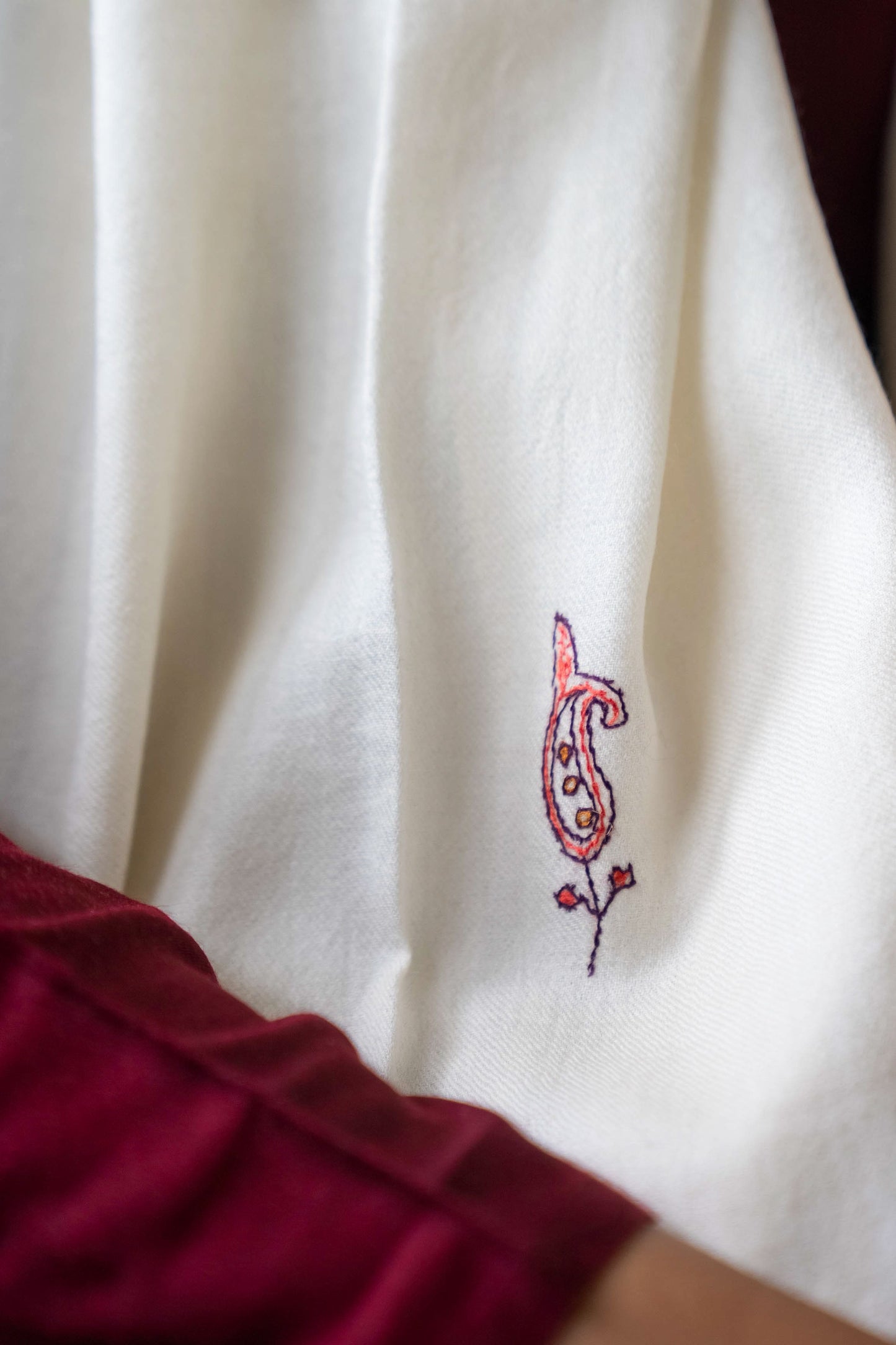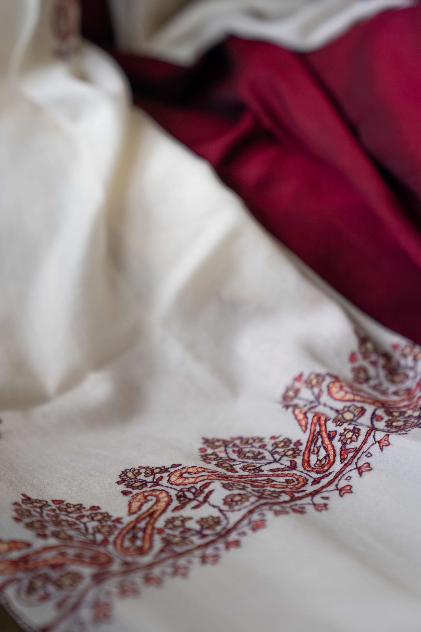 Cream Pashmina Sozni Hand-Embroidered Stole