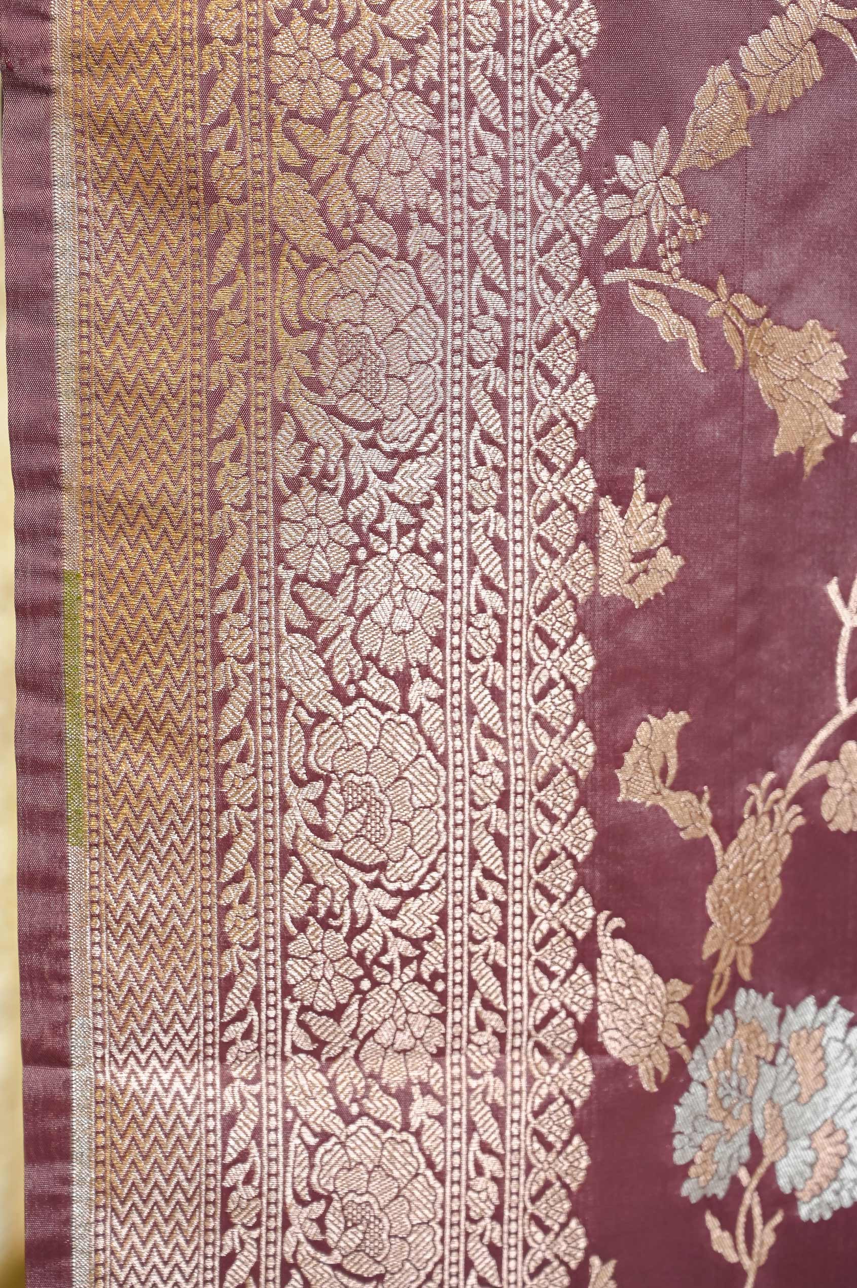 Dusty Grape Wine Katan Silk Banarasi Saree